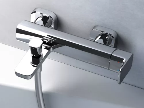 • Fali szerelésű konstrukció: A kádcsaptelep fali rögzítésre lett tervezve, amely elegáns megjelenést biztosít és a fürdőkád peremét nem terheli meg. Ez a megoldás modern fürdőszobákban ideális választás.