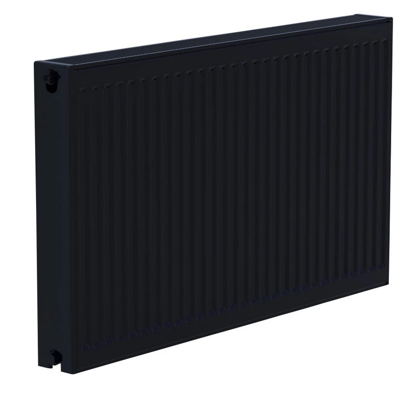 Elegáns fekete acél panelradiátor kiváló fűtőteljesítménnyel és modern dizájnnal. A 22-es típus dupla paneles, konvektoros kialakítással biztosítja az optimális hőleadást 2395 W teljesítménnyel, ideális választás lakások és irodák fűtésére.