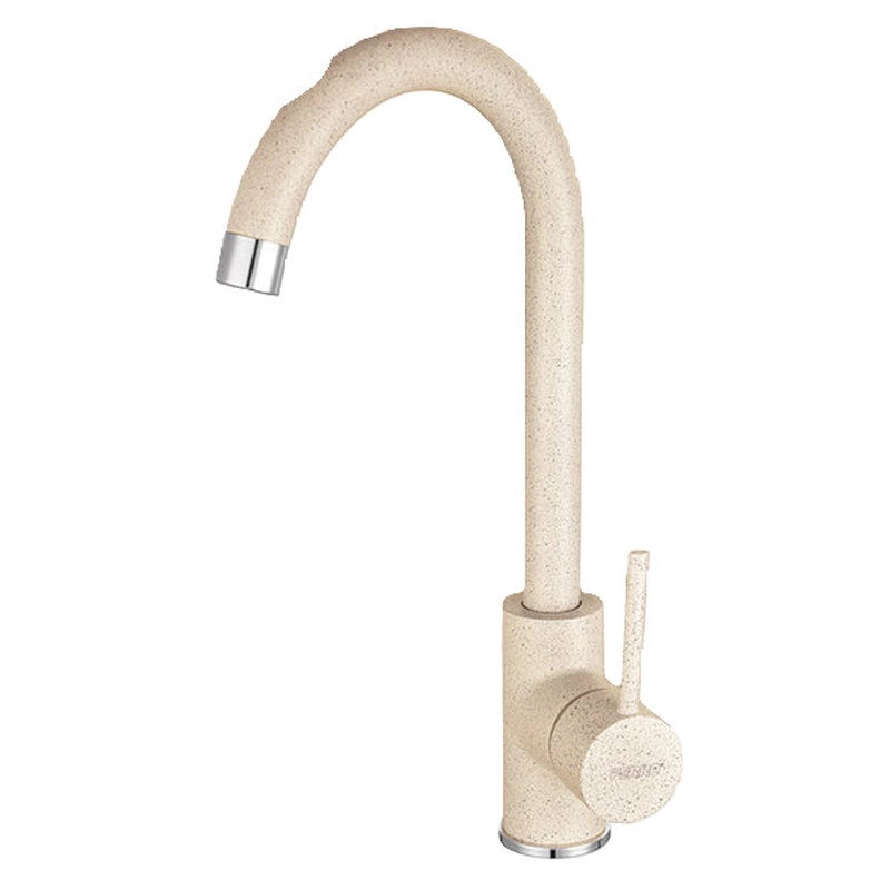 Elegáns homokszínű mosogató csaptelep elforgatható kifolyóval. Modern design és praktikus funkciók a mindennapi konyhai munkához.