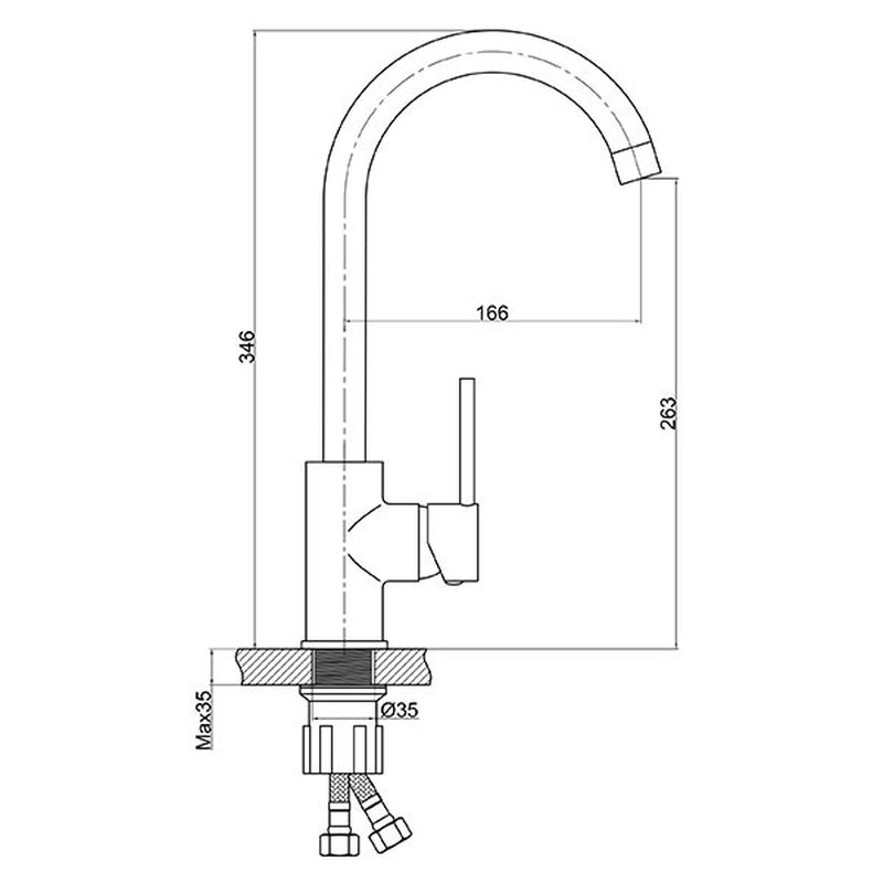 A csaptelep 339 mm magas, ideális magasság az átlagos mosogatótálak felett történő munka végzéséhez. A 40 mm-es kerámiakarton csapágy biztosítja a sima működést és az évekig tartó megbízhatóságot. A beépített perlátor (M22x1) csökkenti a vízfogyasztást, így gazdaságos és környezetbarát megoldást nyújt. A G3/8-M10x1 flexibilis bekötőcső garantálja a könnyű installációt és a szilárda rögzítést.