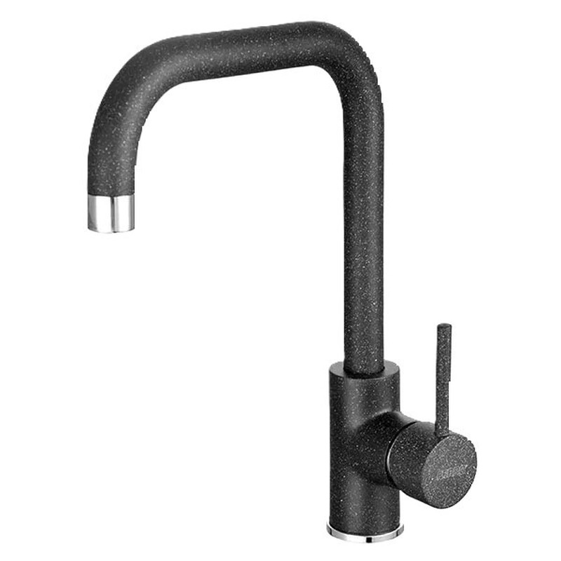 Elegáns grafit mosogató csaptelep elforgatható kifolyóval és egykaros kezelésével. Modern design és megbízható teljesítmény minden konyhai igényre.