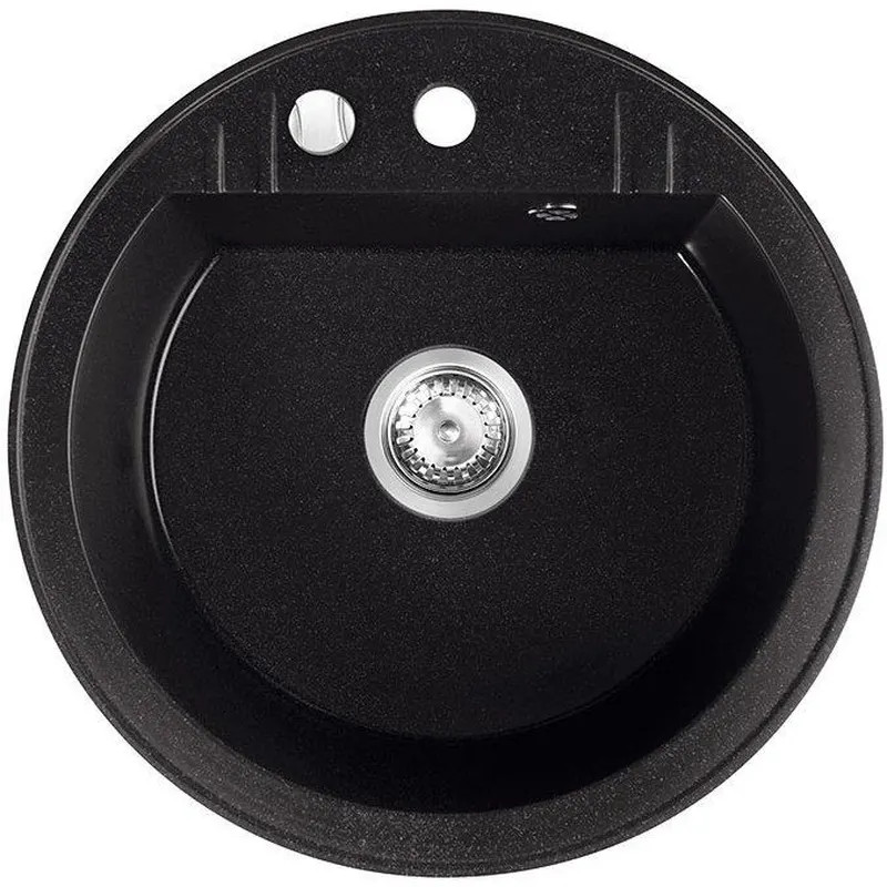 Elegáns kerek gránit mosogató grafit színben. Munkapultba építhető, automata dugókiemelővel és túlfolyóval felszerelt. Tökéletes választás modern konyhákhoz.