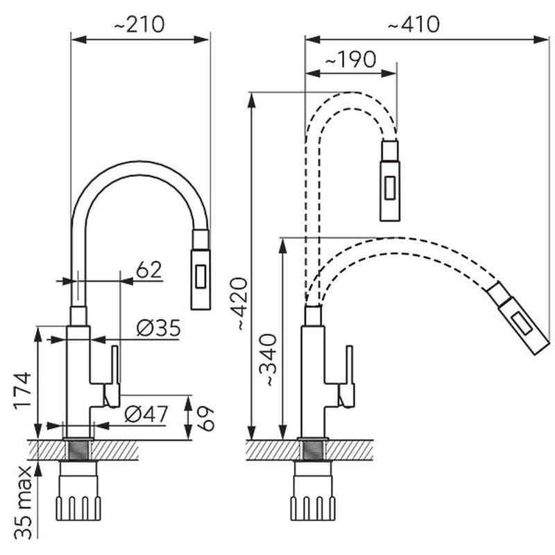 A FERRO Zumba Slim sorozat prémium mosogató csaptelepe az igényes háztartások és modern konyhai berendezések ideális kiegészítése. Az álló kivitelezésű csaptelep 34–42 cm közötti állítható magassággal rendelkezik, így alkalmazkodik bármilyen mosogató mérethez. A 2 funkciós zuhanyfej lehetővé teszi a víznyomás és a vízáramlás rugalmas szabályozását, miközben a flexibilis bekötőcső biztosítja a könnyű telepítést.
