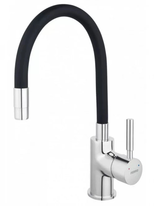 A Ferro Zumba sorozat mosogató csaptelepe a funkcionalitás és a design tökéletes kombinációja. Az álló kivitel ideális magasságában helyezkedik el, biztosítva az ergonomikus mosogatást. A fekete-króm szín párosítás modern, illetve klasszikus konyhastílusokhoz egyaránt kiválóan illik. A flexibilis kifolyócsővel könnyedén elérheti az összes sarkot a mosogatótálcában, míg az egykaros vezérlés egyszerű és intuitív használatot tesz lehetővé.