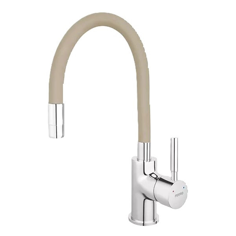 Elegáns, homok bézs színű álló mosogató csaptelep flexibilis kifolyócsővel. Egykaros kezelésű, modern kialakítás, amely tökéletesen illeszkedik bármely konyhastílushoz.
