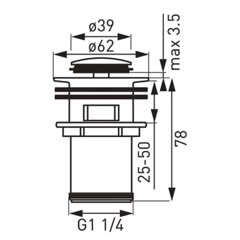 Korszerű, magasított kivitelű lefolyószelep ráépíthető mosdókhoz. Túlfolyó nélküli megoldás, króm színezésben, megbízható minőségű fém szerkezet.