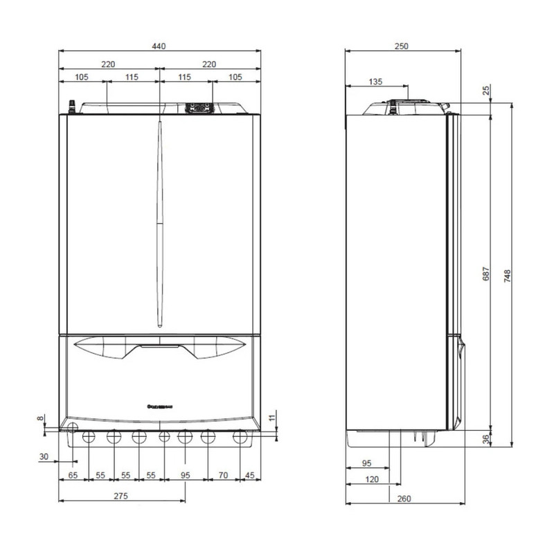 • Falra szerelhető kondenzációs fűtő gázkazán külső tároló bekötésére előkészítve
