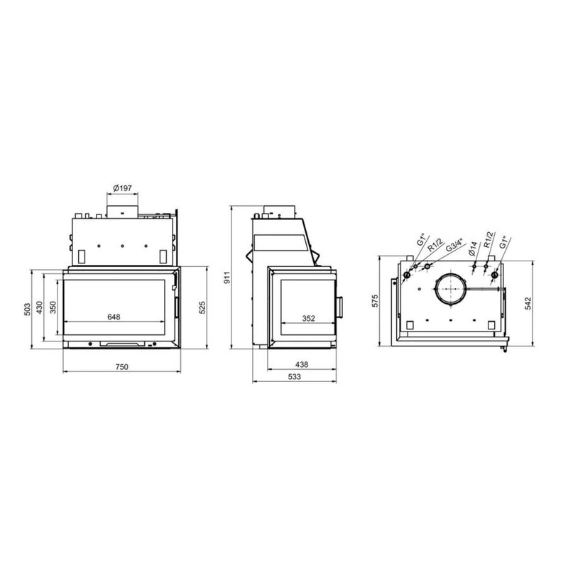 PanAqua 75 CG Bal 14-24 kW központi fűtésre köthető, vízteres kandallóbetét