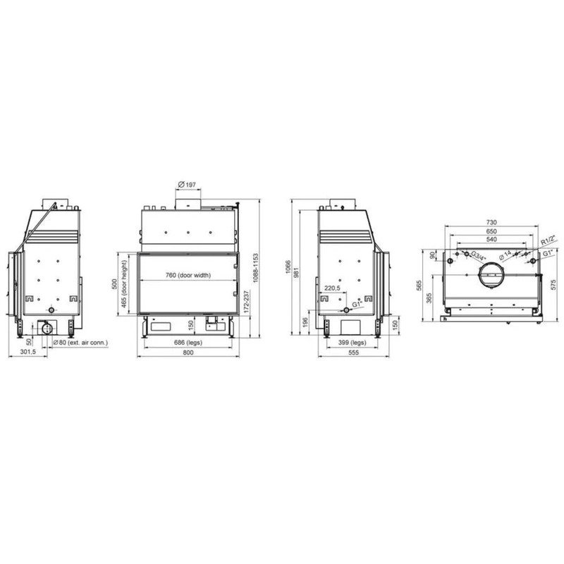 PanAqua 80 EVO Zárt égésterű, prémium kivitelű, fűtésre köthető, vízteres kandallóbetét