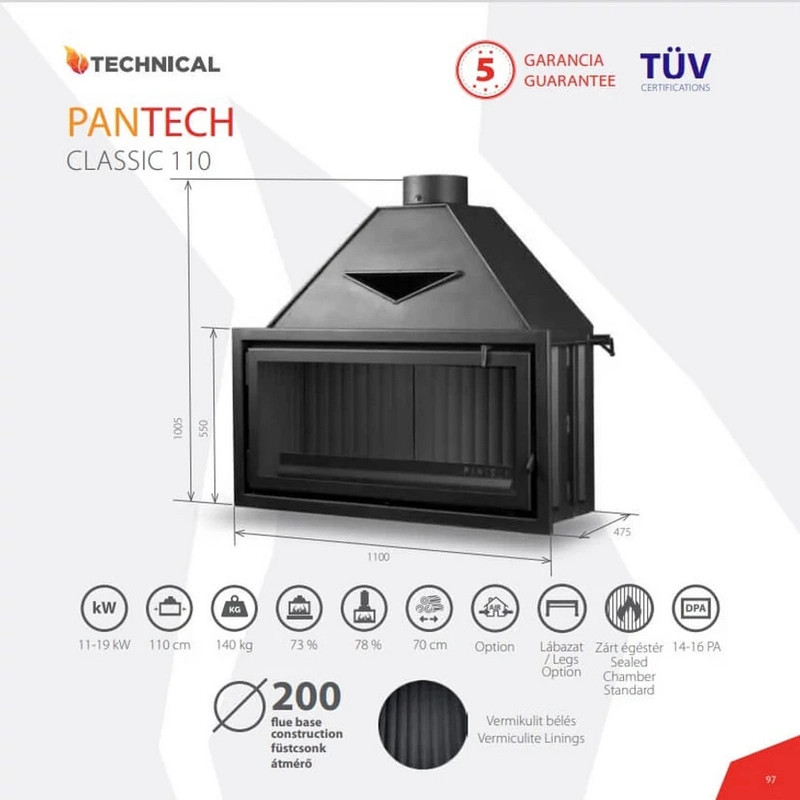 PanTech 110 Classic kandallóbetét, 11-19kW