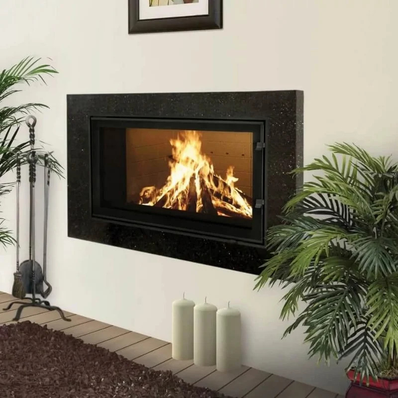 A PanTech Classic sorozat 95 cm széles kandallóbetéte kiváló hatásfokkal és modern designnal biztosít kellemes meleget otthonában. Shamott-vermikulit béléssel és tiszta égést garantáló lángterelő rendszerrel felszerelt, energiatakarékos fűtési megoldás.