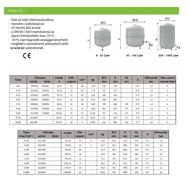 • Típus: Reflex N 25 - zárt fűtési és hűtési rendszerekhez