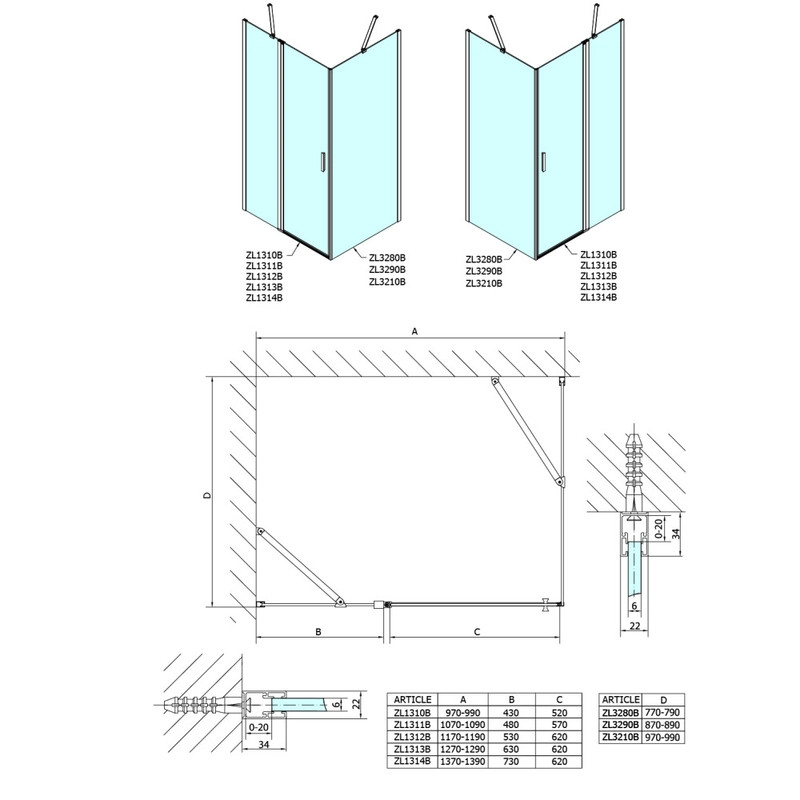 Az oldalfal a ZOOM LINE termékcsaládba található zuhanyajtókkal kombinálható.