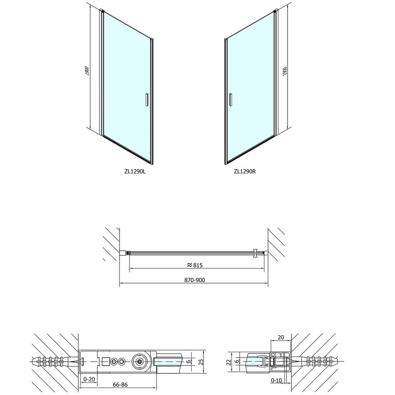 SAPHO POLYSAN ZOOM LINE zuhanyajtó, 900mm, transzparent üveg, króm ZL1290