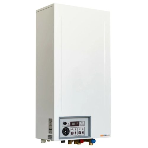 Kombinált elektromos vízteres kazán 24 kW teljesítménnyel, amely központi fűtéshez és átfolyó rendszerű használati meleg víz előállításhoz egyaránt alkalmas. Gyárilag beépített szivattyúkkal, biztonsági berendezésekkel és közel 100%-os hatásfokkal szállított.