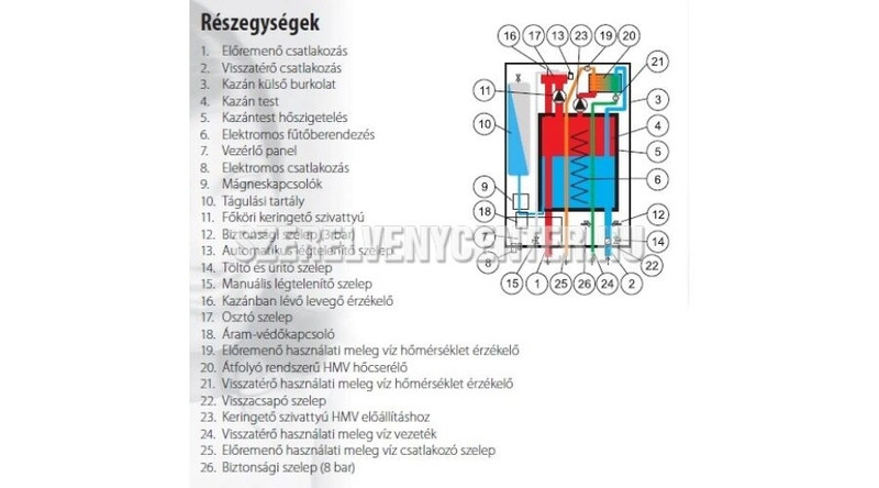 • Beépített visszacsapó szelep a fűtési visszatérő ágban