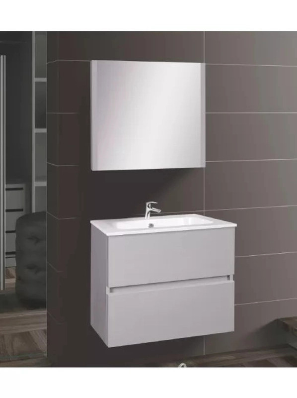 Elegáns szürke mosdószekrény két praktikus fiókkal. Kompakt méretei és modern design-ja ideális választás kisebb fürdőszobákba, ahol a funkcionalitás és az esztétika egyaránt fontos.