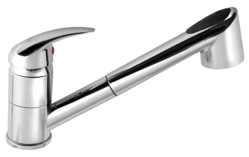 Modern, funkcionalitásban gazdag mosogatócsap 50 cm-es kihúzható zuhanyfejjel. Krómozott felületű, időtálló kialakítás minden konyhához.