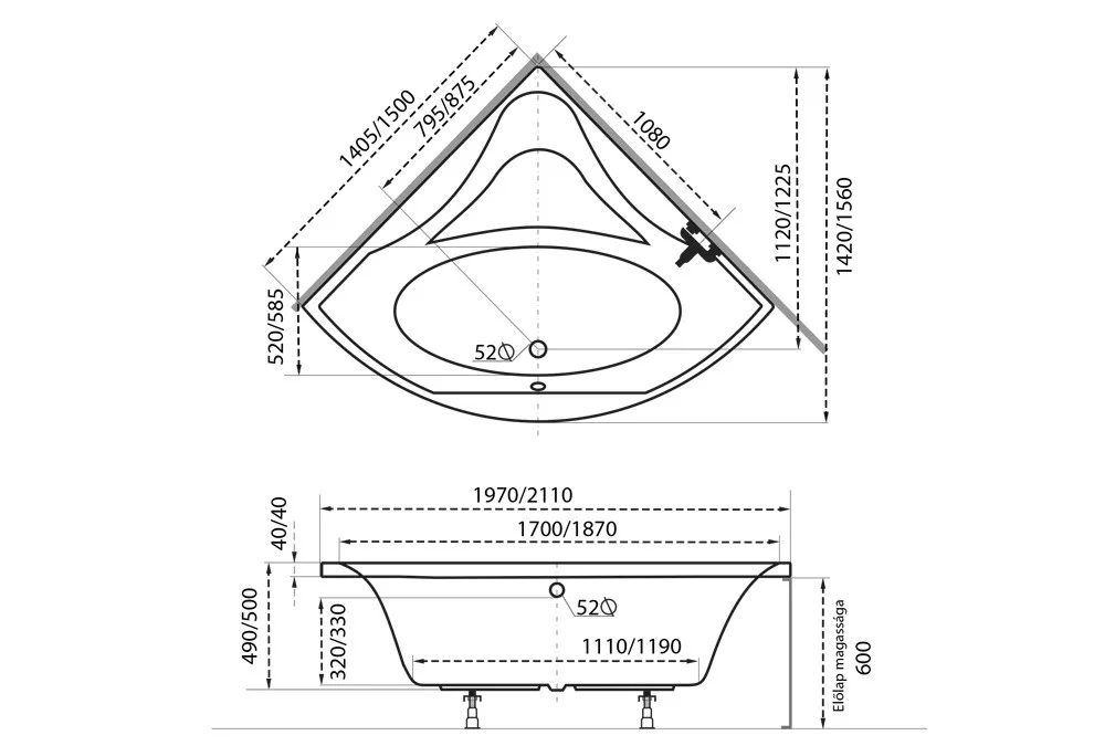 Az Aura sarokkád tökéletes megoldás compact fürdőszobákhoz. 140x140 cm-es méretével elegáns dizájnt és kényelmes fürdőzési élményt biztosít.
