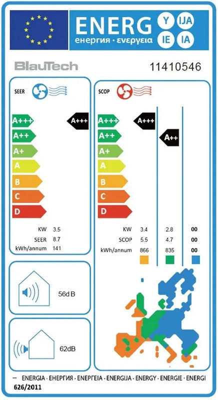 Blautech Premium Plus (11410546) Fehér 3,5kW hűtő-fűtő oldalfali split klíma, WiFi, UVC lámpa, -35°C fűtés
