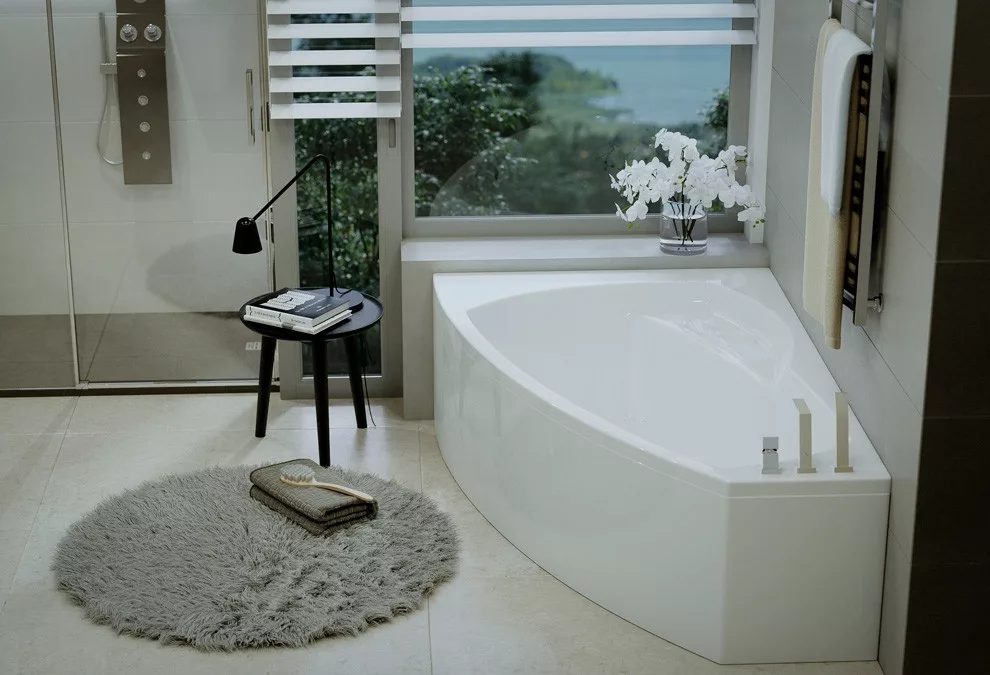 Az erőteljes Radaway Claudia aszimmetrikus kád modern fürdőszobák igényeit teljesíti. Ergonomikus jobbos kialakítása és tágas 160x105 cm-es mérete luxuskényelmet biztosít.