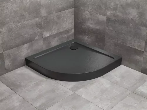Prémium minőségű íves zuhanytálca 80x80 cm-es méretben, elegáns fekete előlappal. Ajándék szifonnal szállítjuk, amely biztosítja a tökéletes vízlevezetést és a kényelmes használatot.