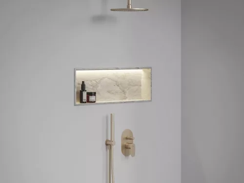 • Belső egység: Az integrálható falba süllyeszthető belső szerkezet nem csak a vezetékeket rejti el, hanem a szerelési és szabályozási egységeket is. Ez csökkenti a nyilvánvaló vezetékek számát, és tisztább, szellősebb fürdőszobai megjelenést garantál.