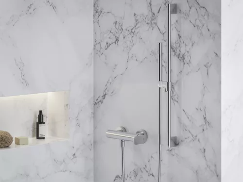 • Fali szerelés: Kompakt elhelyezés az oldalfalon, amely maximális mozgásszabadságot biztosít a zuhanyzóban és könnyebb takaríthatóságot eredményez.