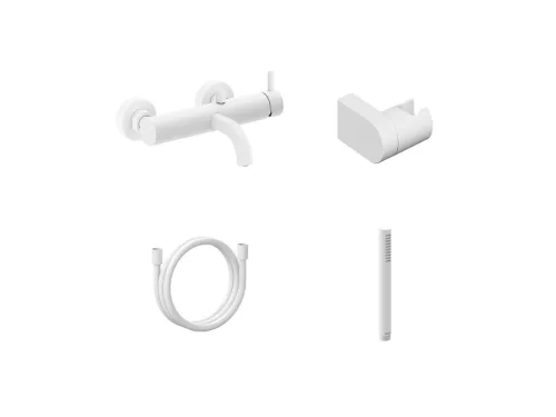 Elegáns fali kádcsaptelep zuhanyszettel White Velvet kifejezéssel. A RAVAK Espirit sorozat rejtett perlátor és kompakt kialakítása garantálja az esztétikus és funkcionális fürdőszobai megoldást.