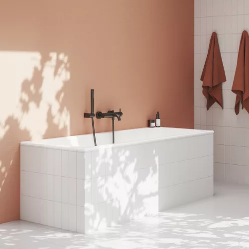 • Fali szerelés: A csaptelep falra szerelhető kialakítása tökéletes helytakarékosságot eredményez, mivel nem foglal el helyet a fürdőkád szélén, így szabadabbá teszi az összességet.