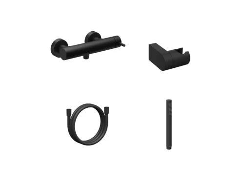Az Espirit fali zuhanycsaptelep a RAVAK prémium fürdőszoba termékcsaládjának egyik kiemelkedő darabja. Ez a matt fekete csaptelep-szett a modern fürdőszoba-design tökéletes megvalósítása, amely elegancia és funkcionalitás kombinációjaként szolgál. A csaptelep falra szerelhető kivitelű, amely rendkívül praktikus és helytakarékos megoldást biztosít.