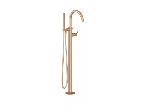 Elegáns, modern kádcsaptelep Rose Gold Brushed kivitelben a RAVAK Espirit sorozatból. Padlón álló, íves design, amely tökéletes választás a luxus fürdőszobákhoz.