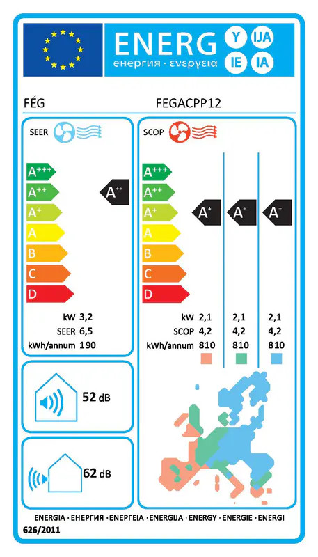 Energiahatékonysági osztály (hűtés/fűtés) A++ / A+