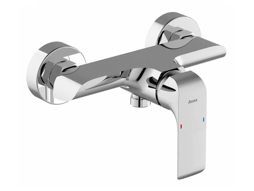 Elegáns falra szerelhető zuhanycsaptelep a RAVAK Flat sorozatból. Króm kivitelben, 150 mm-es kialakítás, zuhanykészlet nélkül – könnyen integrálható meglévő fürdőszobai rendszerekbe.
