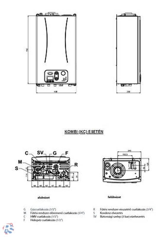 • Biztonság és védelem: C63 égéstermék-elvezetési lehetőség, IPX4D villamos védettség