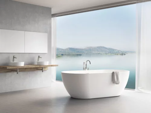 A Freedom O kád fokozatosan ívelt vonalai nem csupán esztétikai előny, hanem funkcionális megoldást is kínálnak. Az ergonomikus forma biztosítja, hogy a test természetes helyzetben támogatott legyen fürdés közben, így maximális kényelmet és relaxációt nyújt. A szabadonálló kialakítás lehetővé teszi, hogy a fürdőszobában bármely pozícióban elhelyezhető legyen, flexibilitást adva az enteriőr tervezéshez.