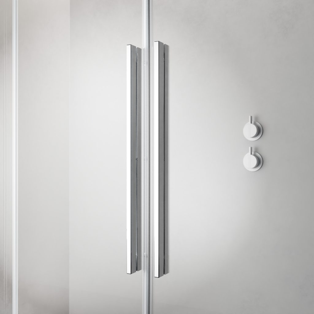 • Ergonomikus krómozott fogantyú: Az 500 mm-es krómozott designfogantyú ergonomikusan kialakított, amely kényelmes fogást biztosít és esztétikus megjelenést kölcsönöz az egész parávánnak.