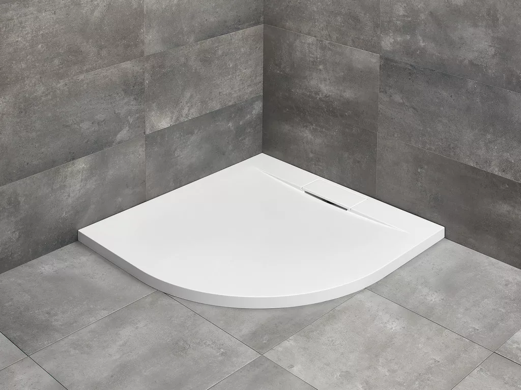 Radaway Giaros A 90x90 cm-es íves zuhanytálca modern dizájnnal és rendkívüli teljesítménnyel. Ajándék szifonnal szállított, rejtett vízelfolyással és 54 l/perc vízleeresztő képességgel.