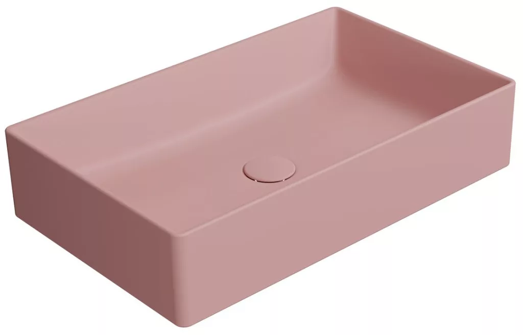 Elegáns és modern kerámiamosdó matt rózsaszín színben. A GSI KUBE X sorozat 60x37cm-es méretű mosdója időtálló dizájnnal és kiváló minőséggel készült.