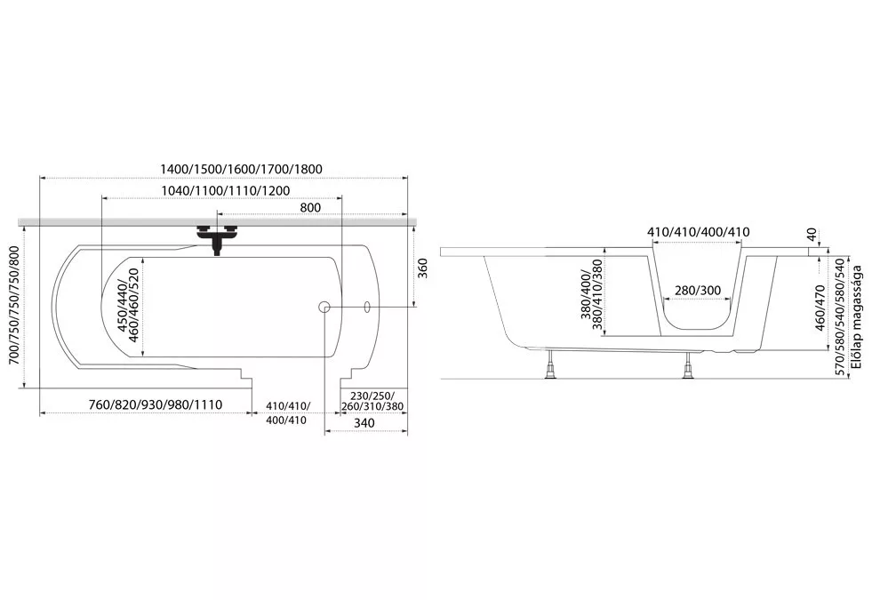 A 160x75 cm-es méret közepesen nagy fürdőszobákhoz ideális. Mérje fel pontosan a helyigényt a szerelés előtt, figyelembe véve az ajtó nyitási szögét és a szükséges mozgásteret.