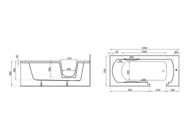Héra akadálymentesített besétálós akril kád 160x75 balos