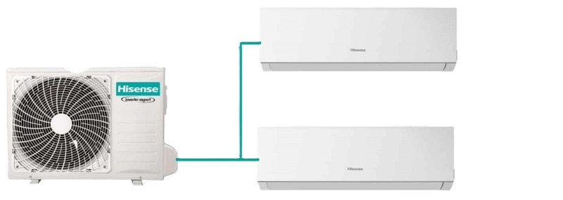 A Hisense Freematch multi-split rendszer lehetővé teszi két helyiség klimatizálását egyetlen kültéri egységgel. A 3,5 kW kültéri egység két univerzális New Comfort beltérivel párosítva energiatakarékos, halk és intelligens működést biztosít. A rendszer előre összehangolt összeállítása garantálja az optimális teljesítményt, miközben jelentősen csökkenti a kültéri egységek számát az épület homlokzatán. A multi-split technológia nem csak esztétikusabb megjelenést eredményez, hanem egyszerűbb telepítést és költséghatékonyabb üzemeltetést is jelent.