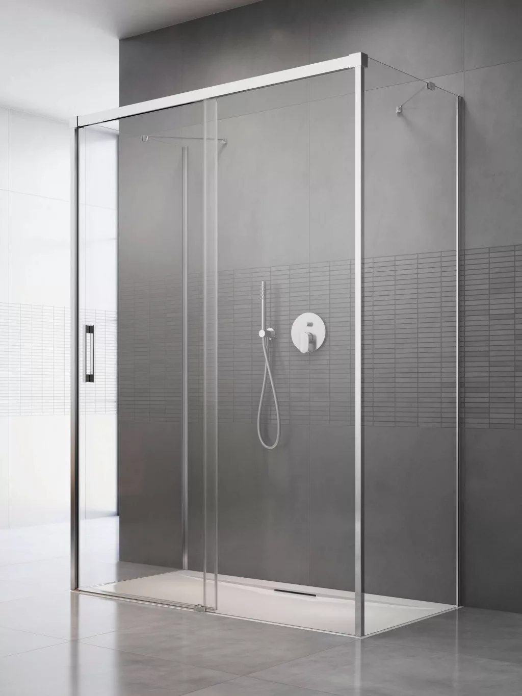 Ez a balos konfigurációjú kabin három elemből áll: egy tolóajtóból és két oldalfalból, amelyek kombinálva adják az összes szükséges funkcionalitást. A 6 mm vastag, edzett üveg szakmailag feldolgozott, Easy Clean vízlepergető bevonattal, amely megakadályozza a vízkőfoltok kialakulását és a nem kívánt lerakódásokat.