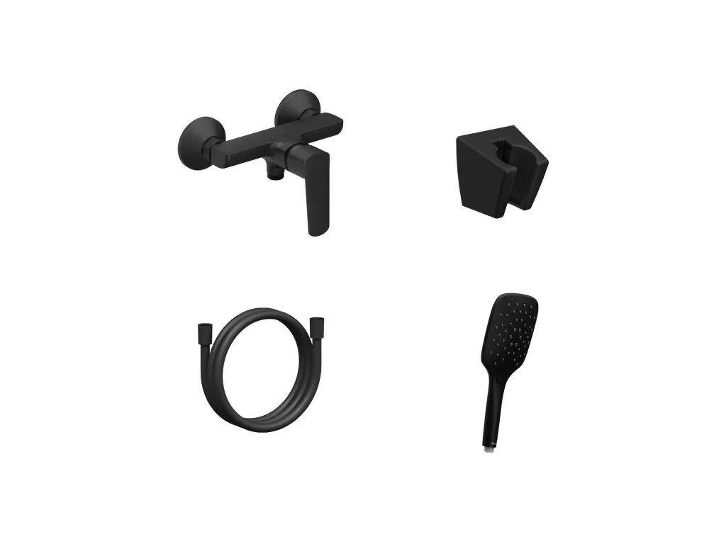 Elegáns, matt fekete design a modern fürdőszobához. A RAVAK Life fali zuhanycsaptelep komplett zuhanyszettel rendelkezik, amely funkcionális és stílusos megoldást nyújt.
