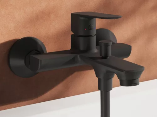 Elegáns, falra szerelhető fürdőkád csaptelep matt fekete kivitelben. A RAVAK Life széria prémium minőségű, modern dizájnnal rendelkező csaptelepe biztosítja a kényelmes és stílusos fürdőzést.