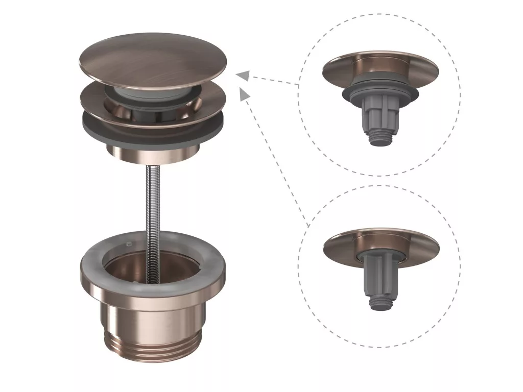 Univerzális mosdó lefolyó 2 az 1-ben rendszerrel, amely Click-Clack vagy fix szereléssel egyaránt használható. Graphite brushed felületével minden fürdőszobai stílushoz tökéletesen illeszkedik.