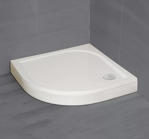 Elegáns 80x80 cm-es íves zuhanytálca csúszásgátló felülettel és ajándék szifonnal. Vízszintes burkolatra és lábra egyaránt szerelhető, modern fürdőszobák ideális választása.