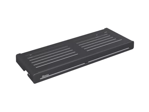 A RAVAK Slim S polc fejlett tervezési megoldások eredménye. Az egyenes vonalvezetés és a precíz méretezés (27,8 × 10,3 × 2,2 cm) biztosítja, hogy a polc vizuálisan könnyű maradjon anélkül, hogy kompromisszumokat tennénk a funkcionalitásban. A fekete/fekete felület pedig nem csupán esztétikailag vonzó, hanem praktikus is – könnyen tisztítható és elrejti a szennyeződéseket.