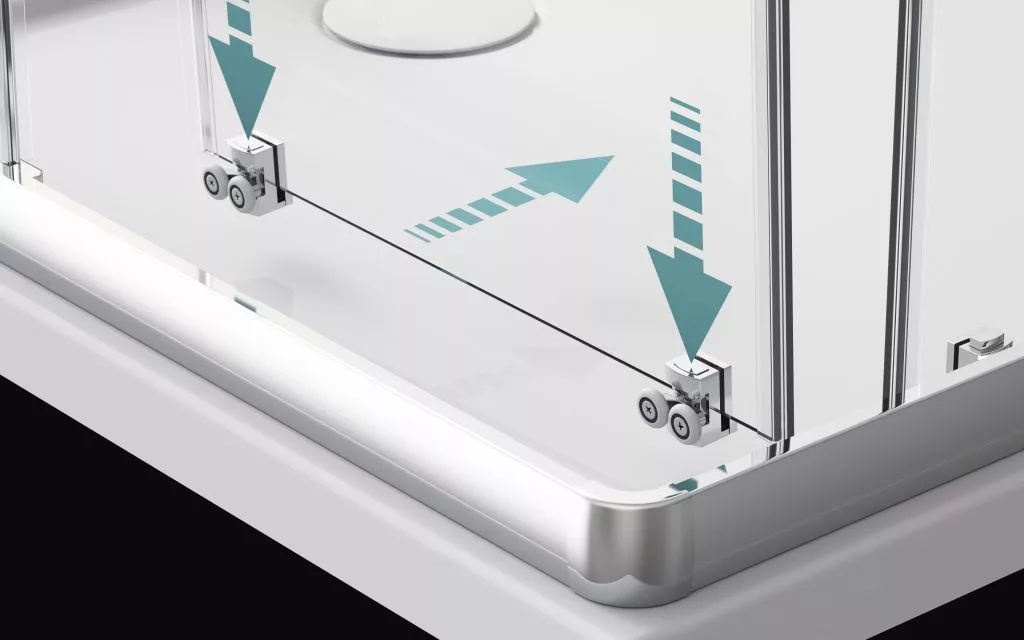 • Dupla csapágyas görgők: Az ajtók hangtalan és precíz mozgást biztosítanak, még hosszú évek után is. A dupla csapágy szörnyeteg terhelésre és napi intenszív használatra lett optimalizálva.