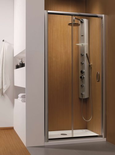 Prémium minőségű zuhanyajtó 100 cm szélességgel, 5 mm vastag edzett üveggel és Easy Clean vízlepergető bevonattal. Állítható króm profil és dupla csapágyas görgők garantálják a tökéletes működést és hosszú élettartamot.